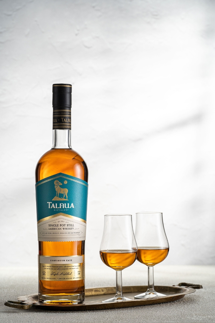 Continuum Cask our estate produced Single Pot Still Whiskey, aged for a minimum of 18 months in virgin American white oak casks, then harvested and vatted into our larger solera-inspired continuum cask. The continuum cask is never fully emptied. As whiskey is removed from the cask, an equal amount of new whiskey enters. Thus, the average age in the cask will gradually increase as maturation continues over many years. The result is a whiskey with beautifully layered depth and complexity of flavor