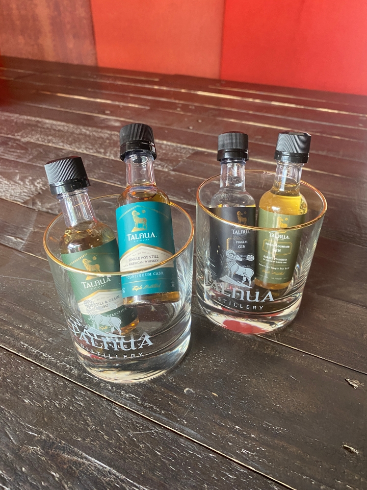 This bundle includes a tumbler glass plus either two whisky shooters (Heritage Selection & Continuum Cask) OR two gin shooters (Finglas and Finglas Dubdair).